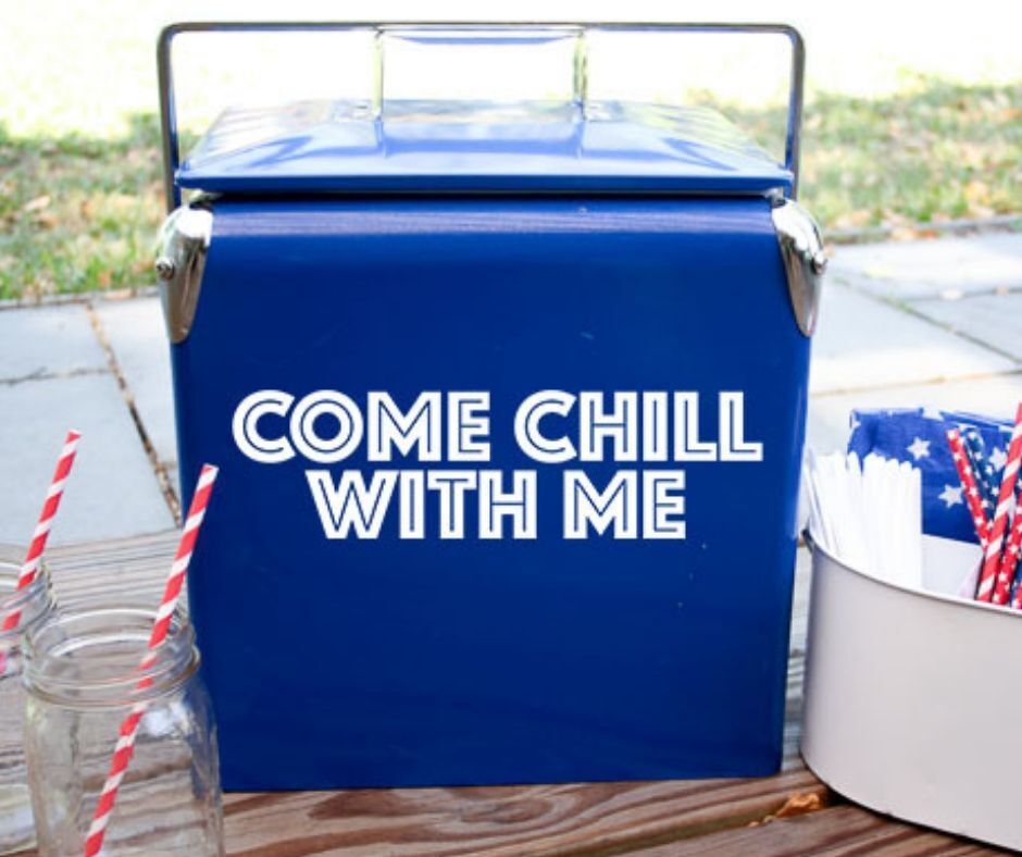 These SVG files are the perfect designs to personalize shirts, mugs, decor, gifts, and more! This download contains 2 sayings. One says "Come Chill With Me" and the other (not shown) says "Ice Cold". Both are in the same font. Files are for personal use only.